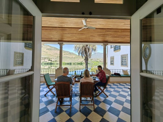 Aberta assim a parte sensorial subimos até à varanda para um almoço onde não faltará vinho e porto!